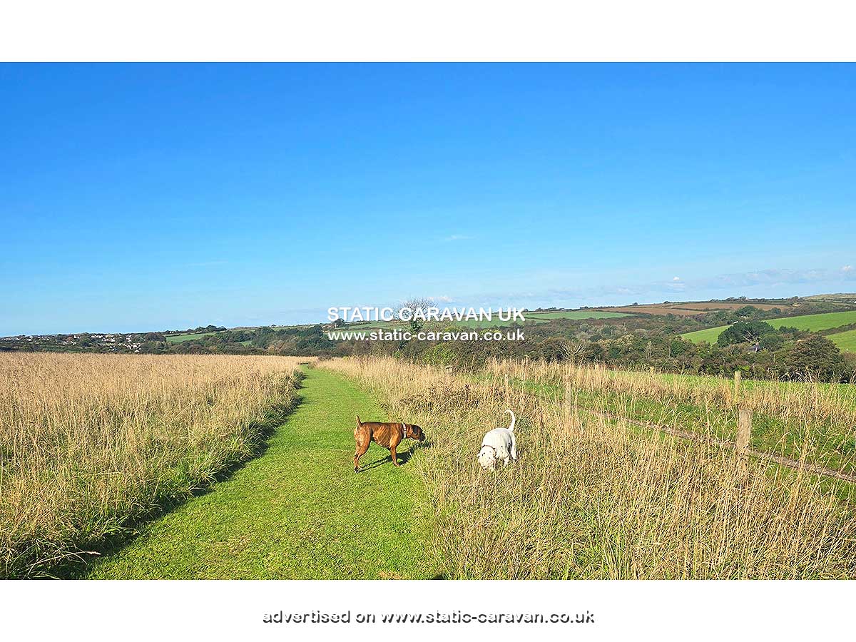 A dedicated dog walking area with panoramic countryside views